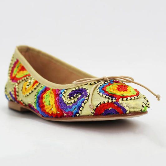Women's ballerina pump in calf leather and fabric gypsy oro (ESE429)