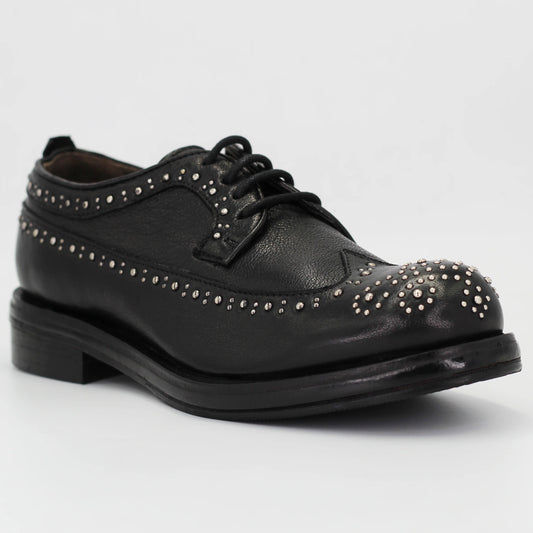 Women's Derby Brogue with Studs in Calf Leather in Nero Black (JPD0828/7)