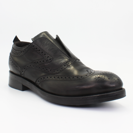 Women's Slip-On Oxford Brogue in Calf Leather Nero Black (JPD35773/19)