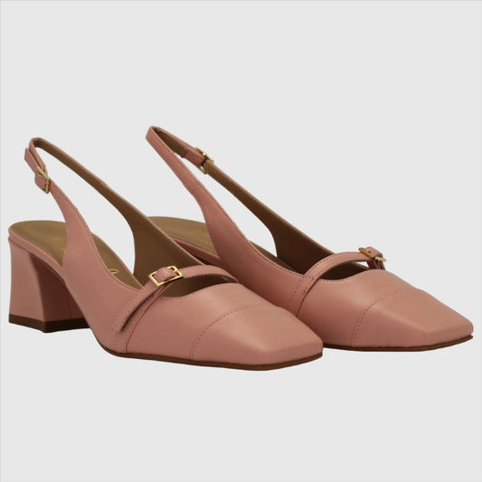 Women's Sling Back Heel with Square Toe Calf Leather Plaster (CRC123)