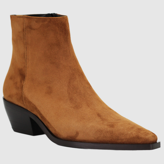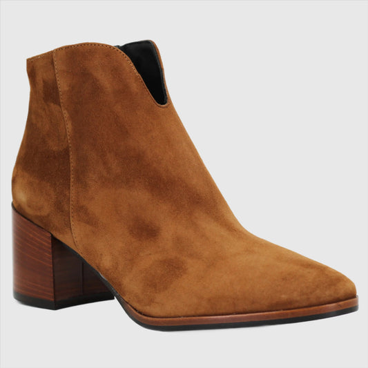 Women's pointed toe ankle boot in calf leather suede camoscio sigaro (KIRA3)