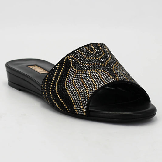Women's bedazzled sandal in calf leather nero (ELMARGOT)