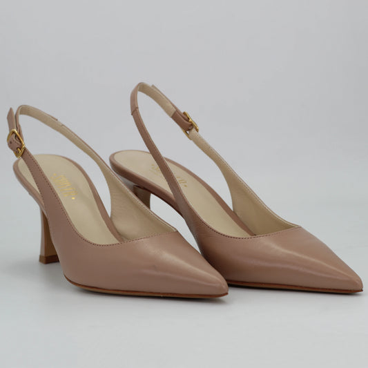 Women's Sling Back Court Heel in Calf Leather Nappa Cipria Powder Pink (MPE581)