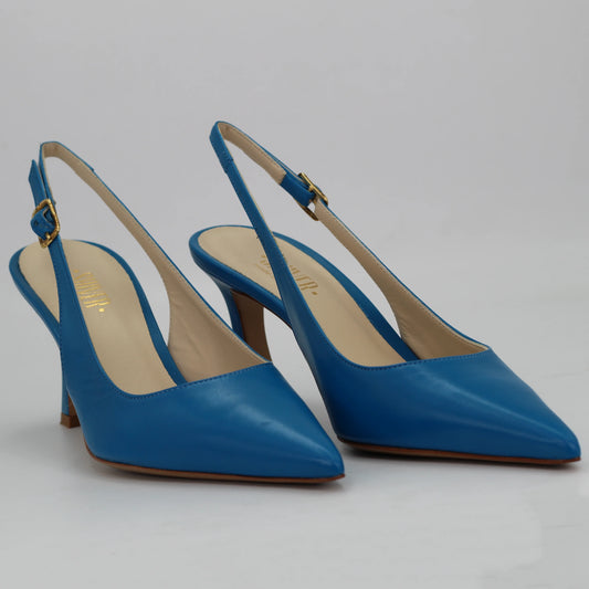 Women's Sling Back Court Heel in Calf Leather Capretto Mare Acqua Blue (MPE581)