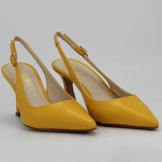 Women's Sling Back Court Heel in Calf Leather Nappa Giallo Yellow (MPE581)