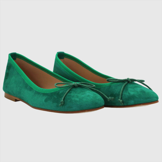 Women's Ballerina Pump in Suede Leather Emerald (ESE485)