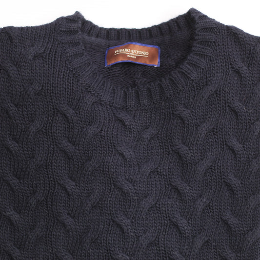 Fusaro Antonio chunky wool blend cable knit jersey in blue (MA25010)