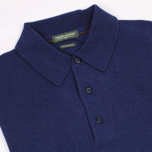 Fusaro Antonio men's wool, cashmere polo in navy blue (MA25004-032-05)