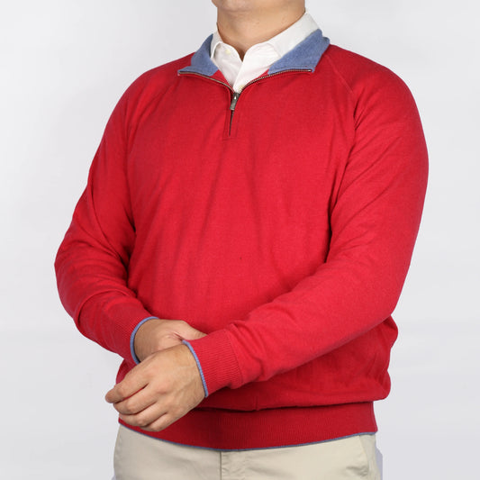 Fusaro Antonio men's wool, cashmere zip up cardigan in Corallo (MA25001-035-05)