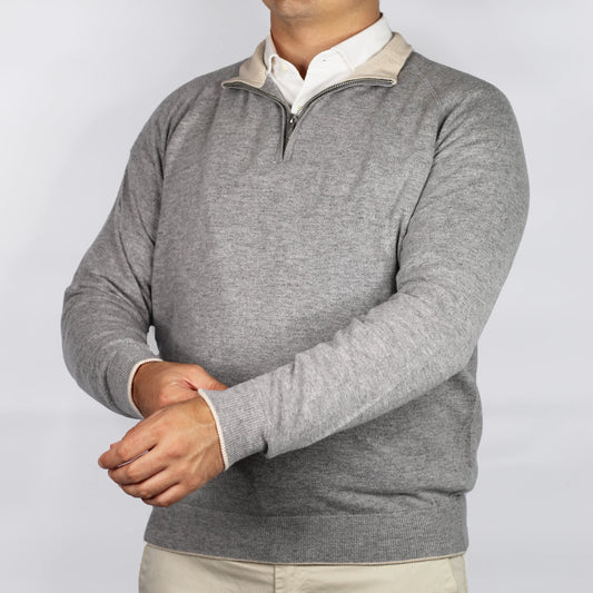 Fusaro Antonio men's wool, cashmere zip up cardigan in grigio (MA25001-035-05)