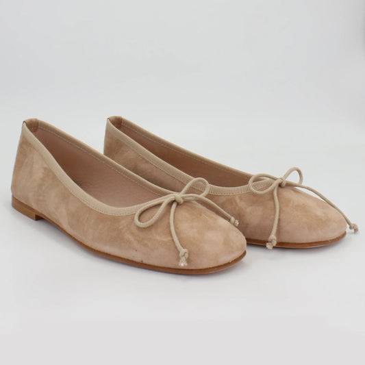 Women's ballerina pump in calf leather suede taupe (ESE485)
