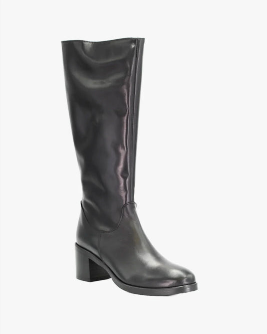 Women's Heeled Long Boot in Calf Leather Nero (ALBA2)