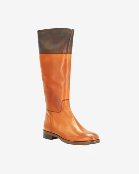 Women's Two Toned Equestrian Boot in Calf Leather Cuoio Testa Di Moro (GC2060)