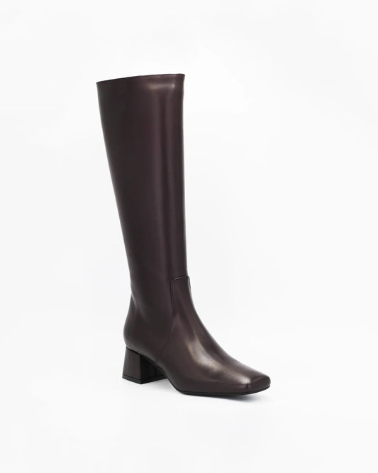 Women's Square Toe Long Boot in Calf Leather Bordeaux (ELIDE 1)