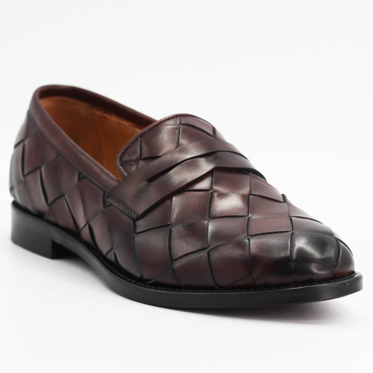 Women's woven loafer in calf leather burgundy (BRD10108)