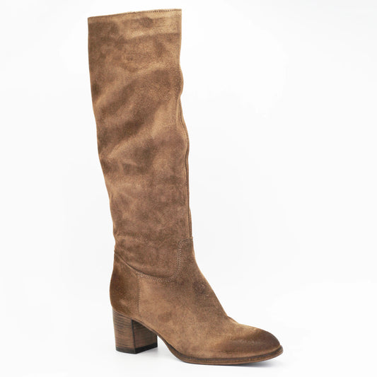 Women's equestrian boot block heel in calf leather suede sigaro (GC5503)