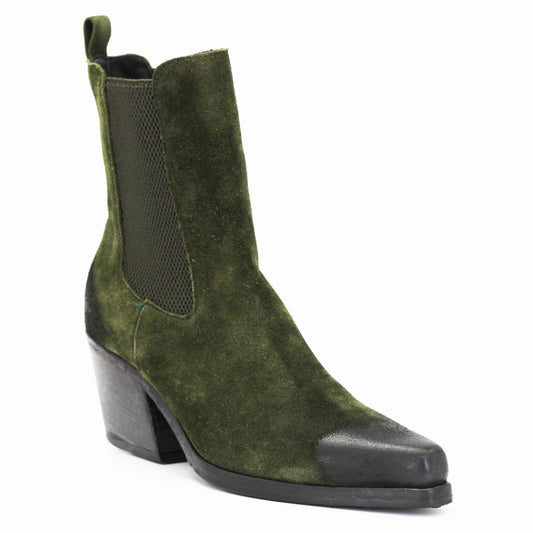 Women's pointed square toe ankle boot in calf leather suede verde (JPD8097/02)