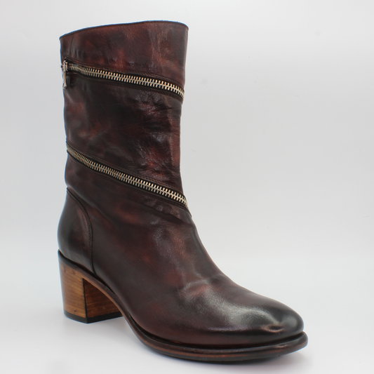 Woman's Mid Boot with Wraparound Zip in Calf Leather Bruciato Brown (JPD35165/11)