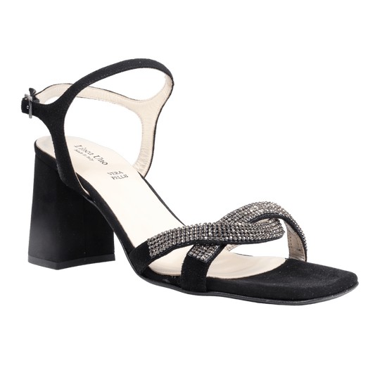 LUF1607SNER - Ladies Diamante Block Heel Black