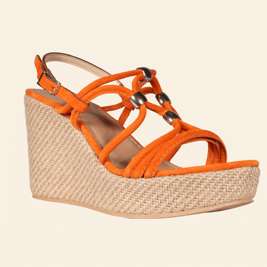 Ladies Genuine Suede Leather Raffia Wedge Sandal in Arancio by Aliverti (AL17193)