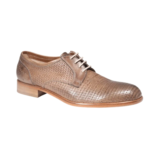 Ladies Derby Woven - Leather Taupe - Leather Sole - ALD318
