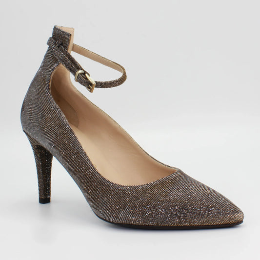 Women's Heel with Ankle Strap in Leather and Fabric Platino (MDF57323)
