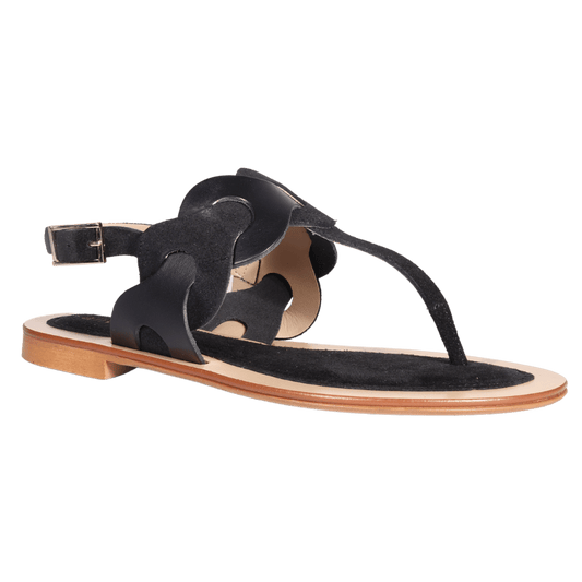 Ladies Genuine Suede Leather Flat Sandal in Nero by Aliverti (AL18704)