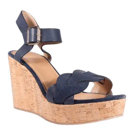 Ladies Genuine Suede Leather Cork Wedge Sandal in Navy (AL18706)
