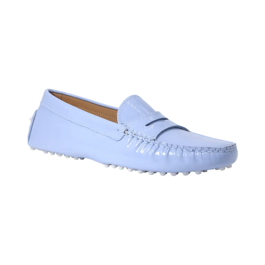Leather Patent Driver Moccasin in Celeste (ALD040)