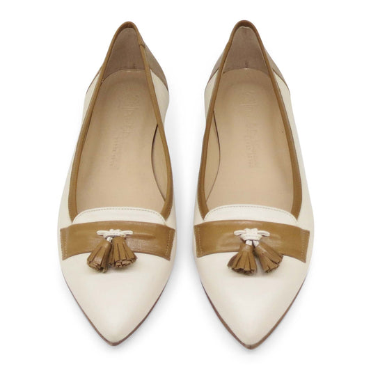 Pointed Leather Ballerina Pump with Tassel in Ivory & Cognac (FEBL720)