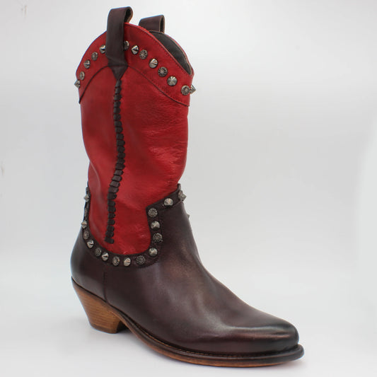 Women's Western Boot in Calf Leather Red and Dark Chile (JPD34263/4)