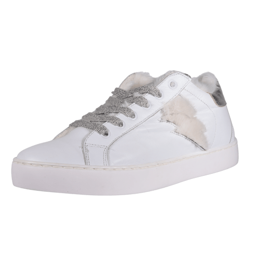 Ladies Sneakers - Leather White and Laminated Silver and Fur - TWCORTINA