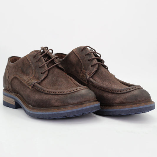 Men's Lace-up Derby Shoe in Calf Leather Suede Espresso (BRU11558)