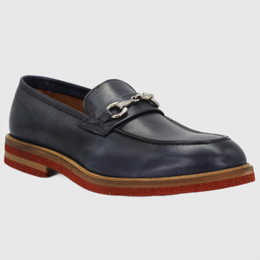Men's Leather Moccasin with horse-bit in Blu (GRU1312/2)
