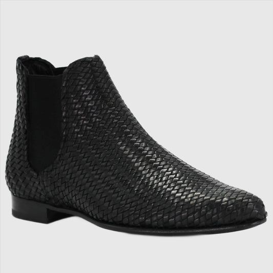 Woman's Hand Woven Chelsea Boot in calf leather Nero (BRD1999)