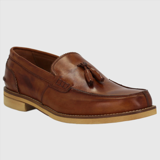 Men's Leather Moccasin with Tassel in Cuoio (GRU302/B)