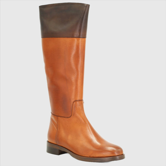 Women's two toned equestrian boot in calf leather cuoio testa di moro (GC2060)