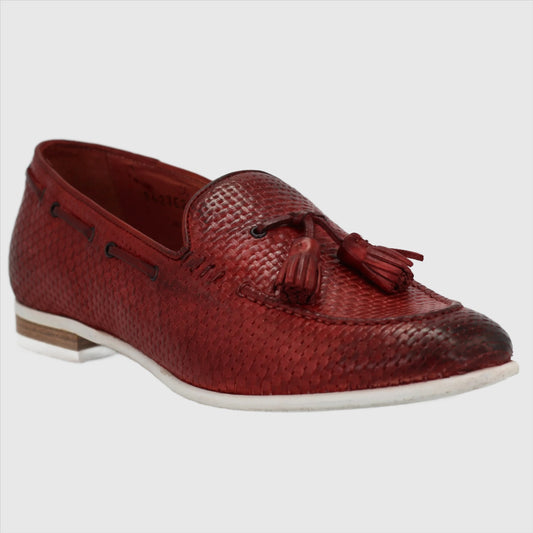 Woman's Tassel Moccasin with Rubber Sole in Rosso (BRD9427)