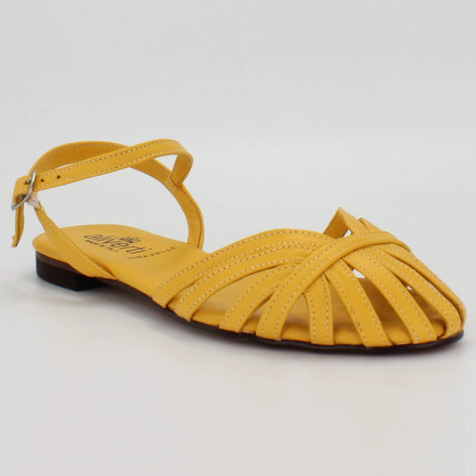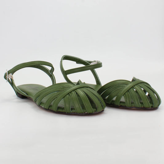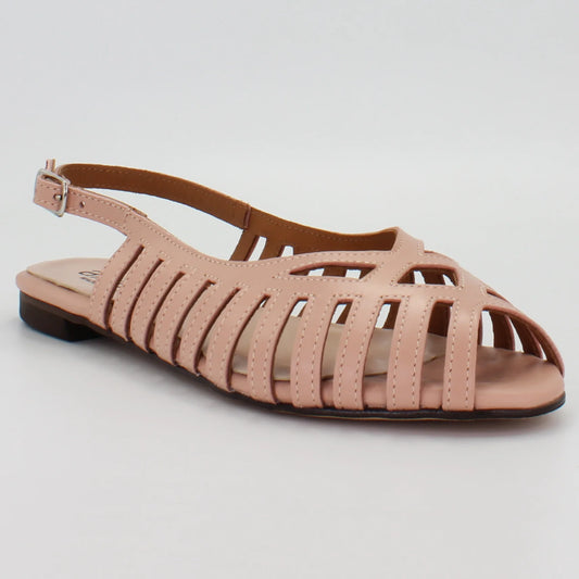 Women's open toe sling-back ballerina pump in calf leather nude (G692)