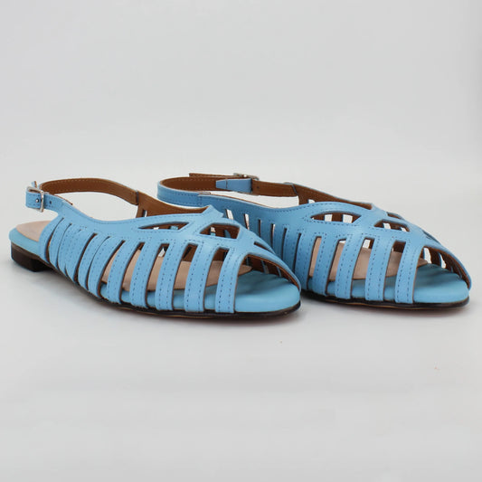 Women's open toe sling-back ballerina pump in calf leather blue (G692)