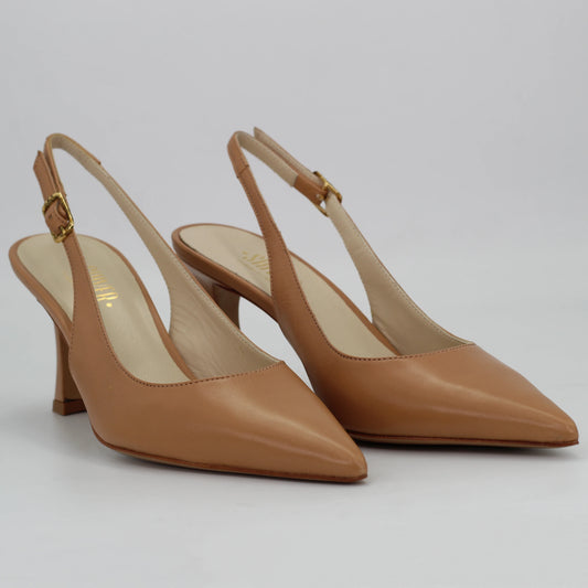 Women's Sling Back Court Heel in Calf Leather Capretto Desert Caramel (MPE581)