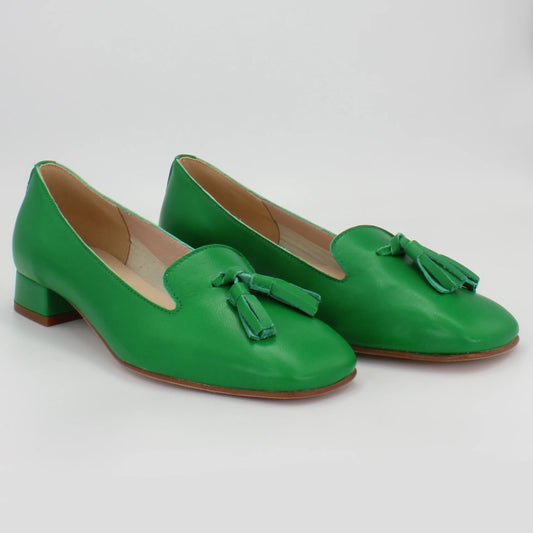 Women's tassle moccasin in calf leather verde green (ESE328T)