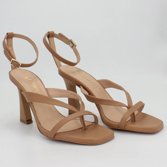 Women's ankle strap high heel in calf leather cream (LA59300)