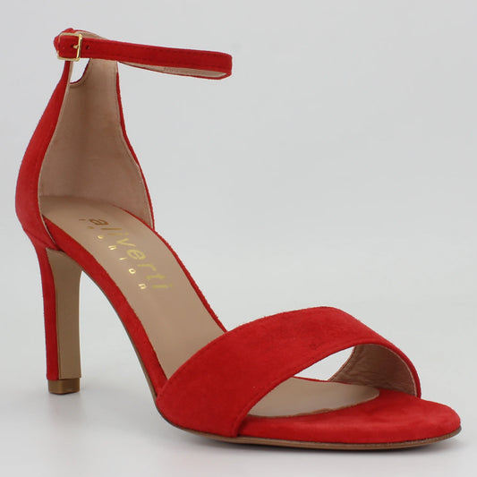 Women's ankle strap high heel in calf leather suede red (ALCORY3)