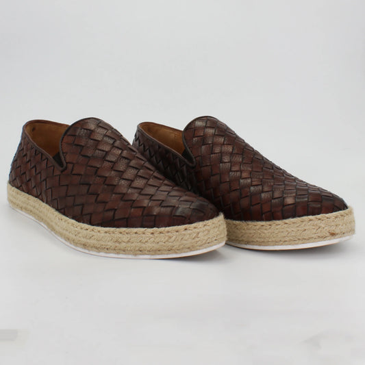 Men's slip on woven espadrille in calf leather brown (BRU11341)
