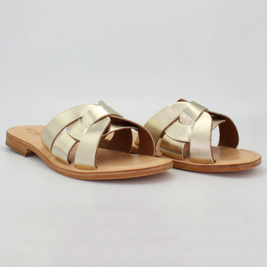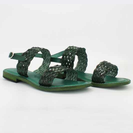 Women's woven sling-back sandal in calf leather verde (1040)