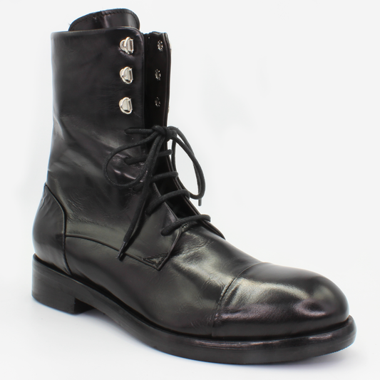 Women's Lace-up Mid Boot in Calf Leather Nero Black (JPD35773/1)