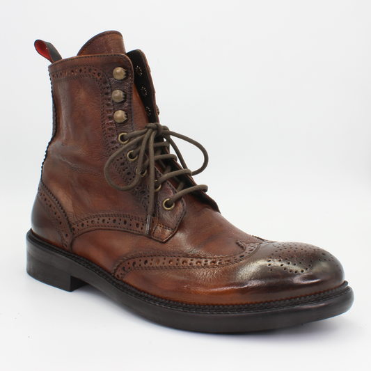 Men's Lace-Up Ankle Boot in Calf Leather Candy Cuoio Brown (JPU37340/1)