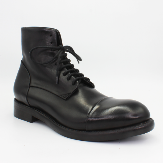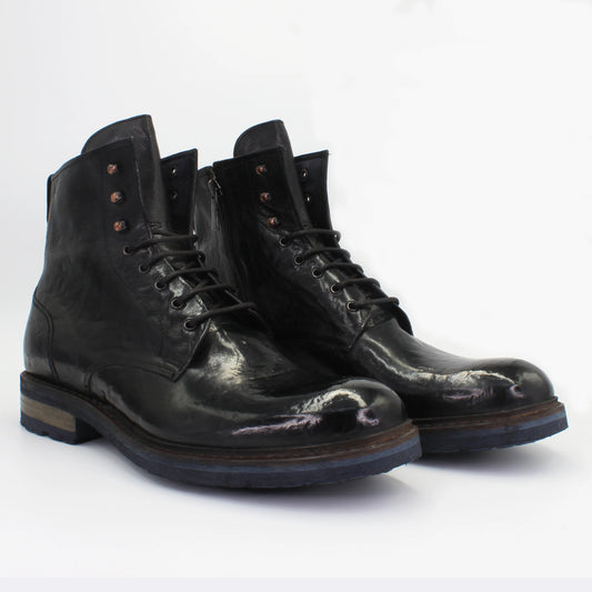 Men's Lace-Up Ankle Boot in calf leather montecarlo lavato Nero (BRU10886)