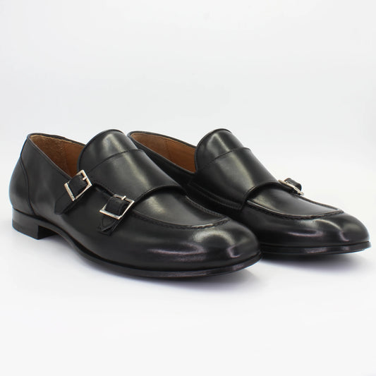 Men's Monk Strap shoes in calf leather Nero (BRU10548)